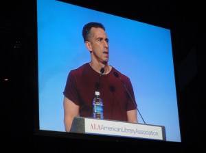 Dan Savage was the opening session speaker at ALA Annual. He writes the Savage Love column for the Seattle Stranger and is the founder of the It Gets Better Project. At ALA, he spoke primarily about the evolution of the It Gets Better Project (the goal of which, for those who haven’t heard of it, is to show gay teens that their future can be better than their present), and why, despite the massive popularity of the videos, he wanted to make a book as well: “I’m a print guy and I think books are magic.”